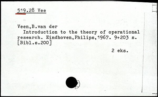 Introduction to the theory of operational research. Eindhoven,Philips,19&7.