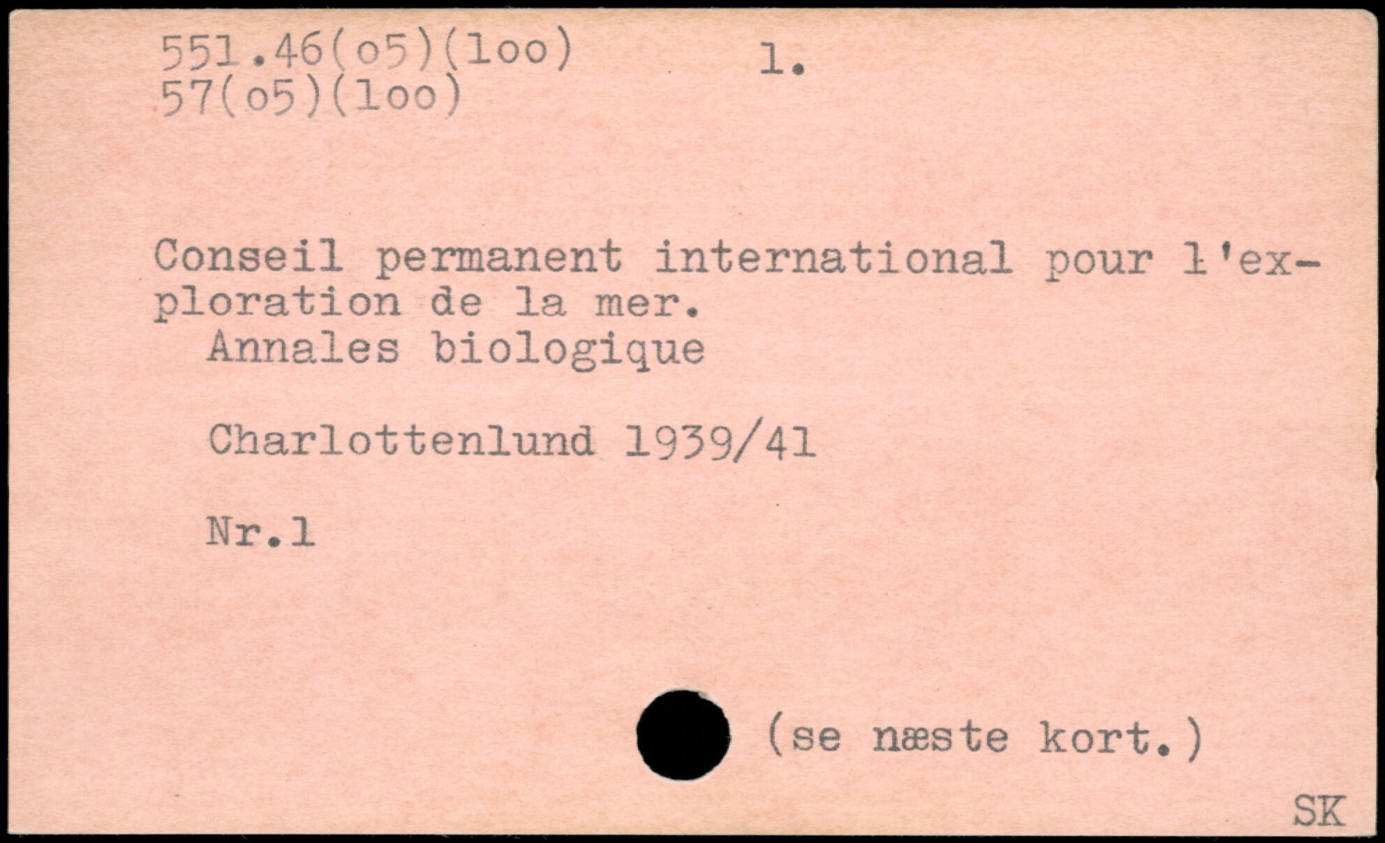 Conseil permanent international pour l’exploration de la mer. Annales biologique Charlottenlund 1939/41 Nr.l
