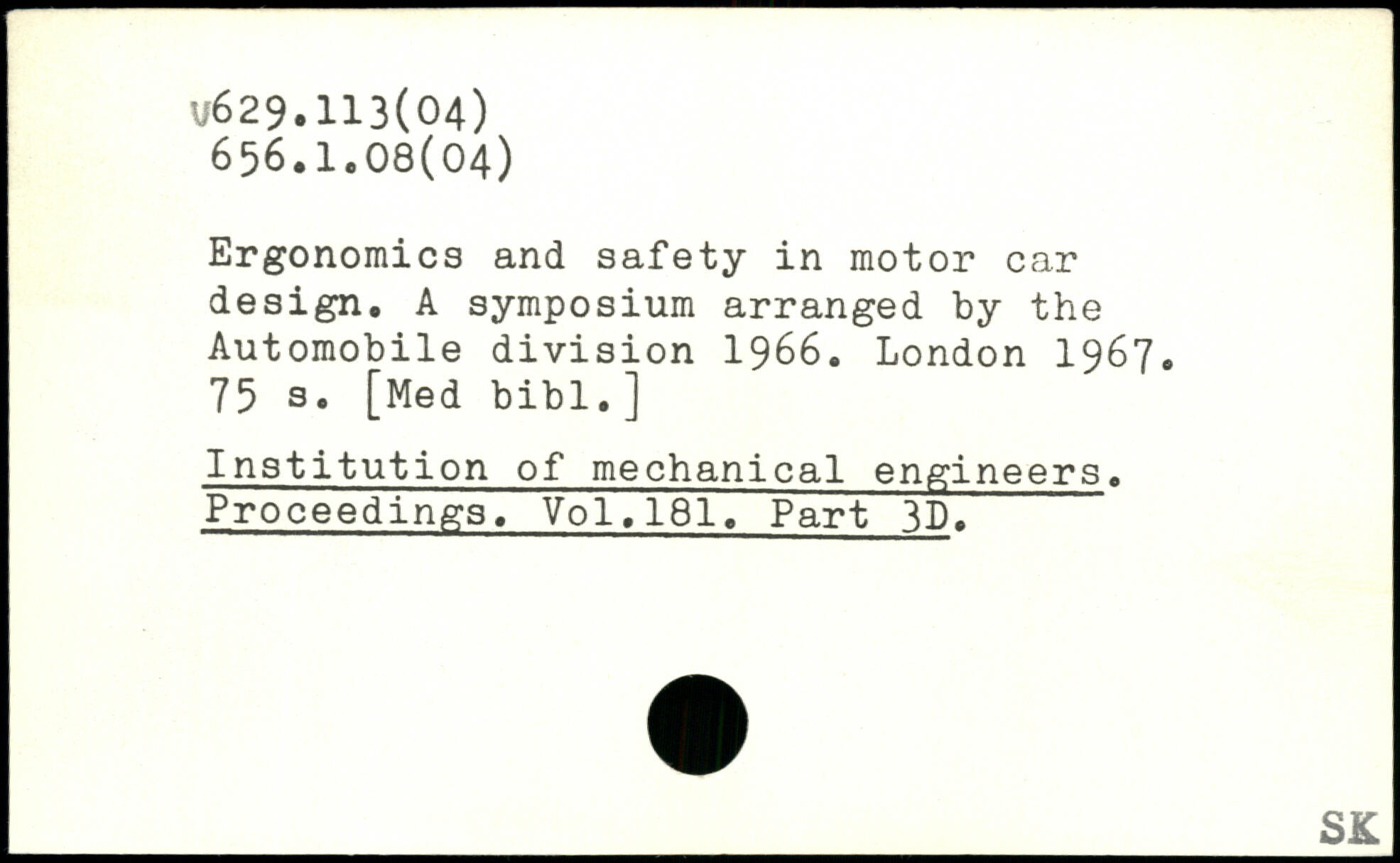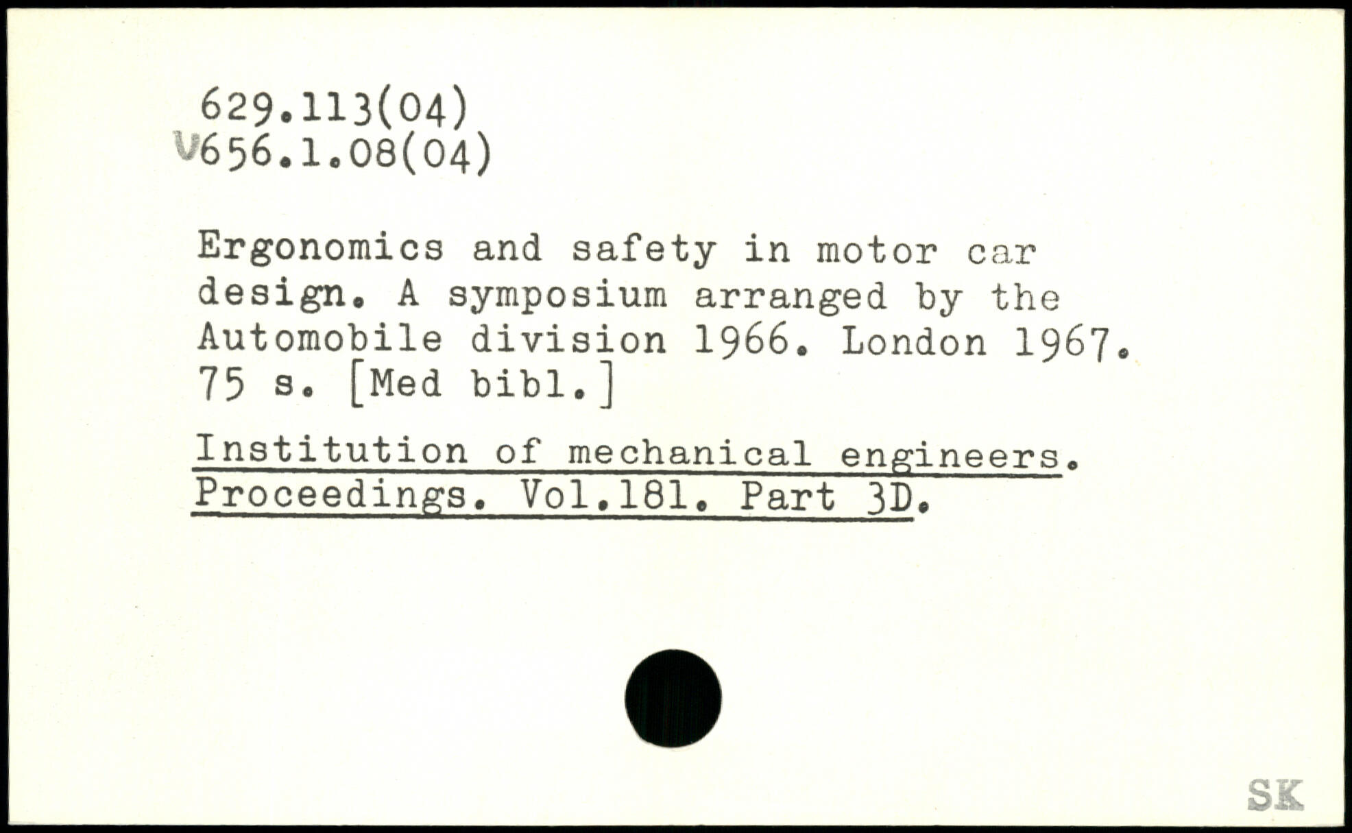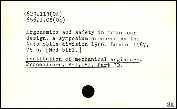 Ergonomics and safety in motor car design. A symposium arranged by the Automobile division 1966.
