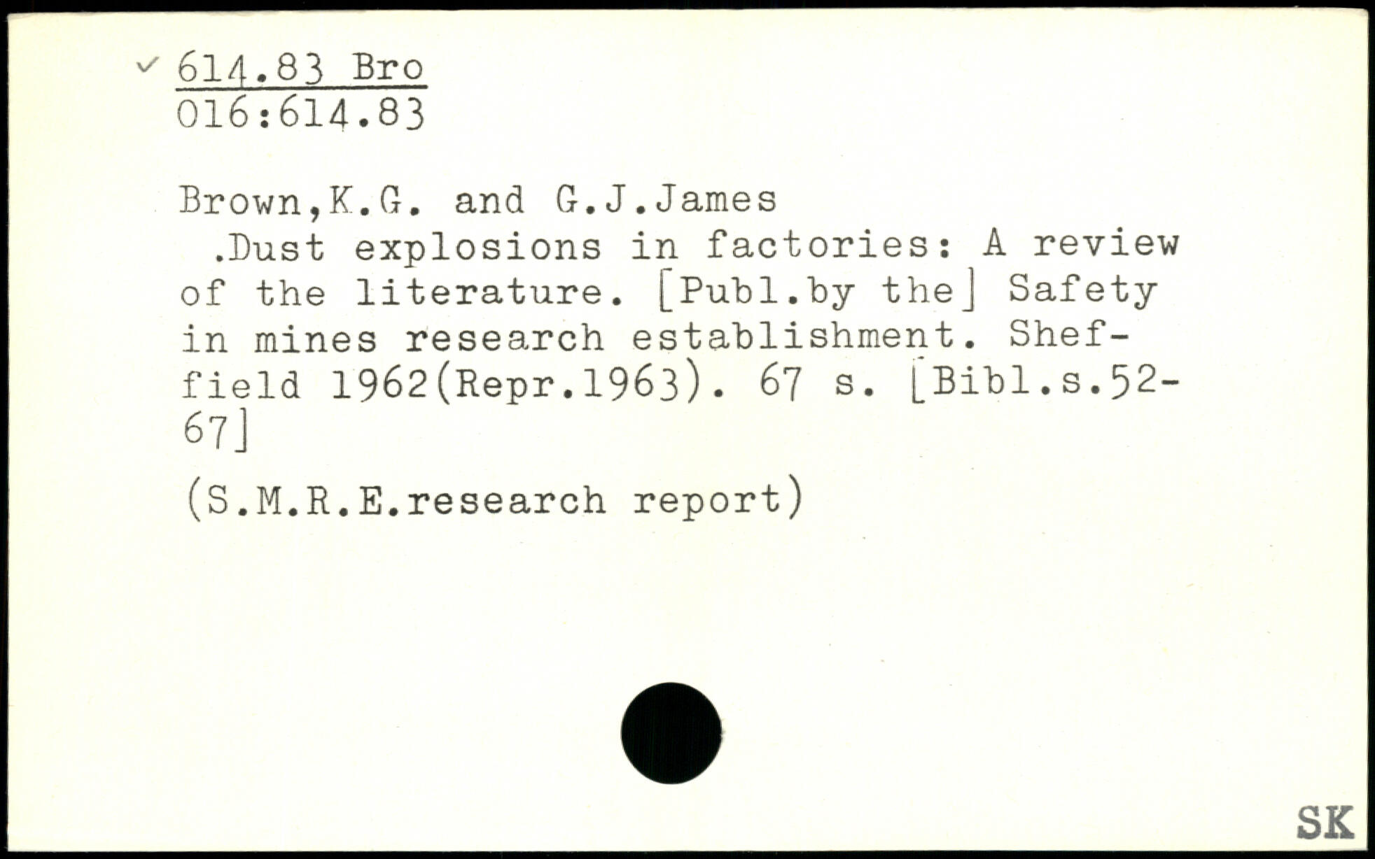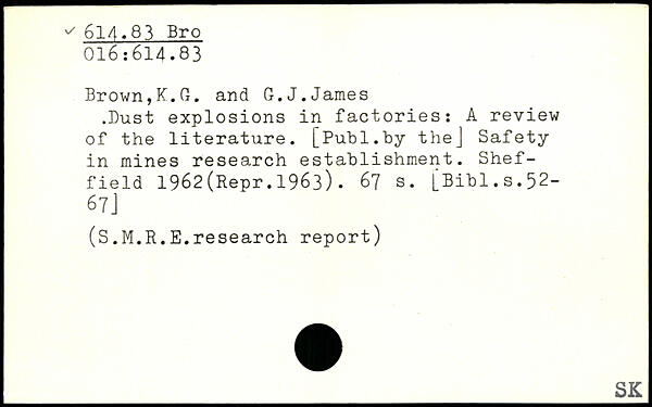 Brown,K.G. and G.J.James .Dust explosions in factories: A review of the literature.