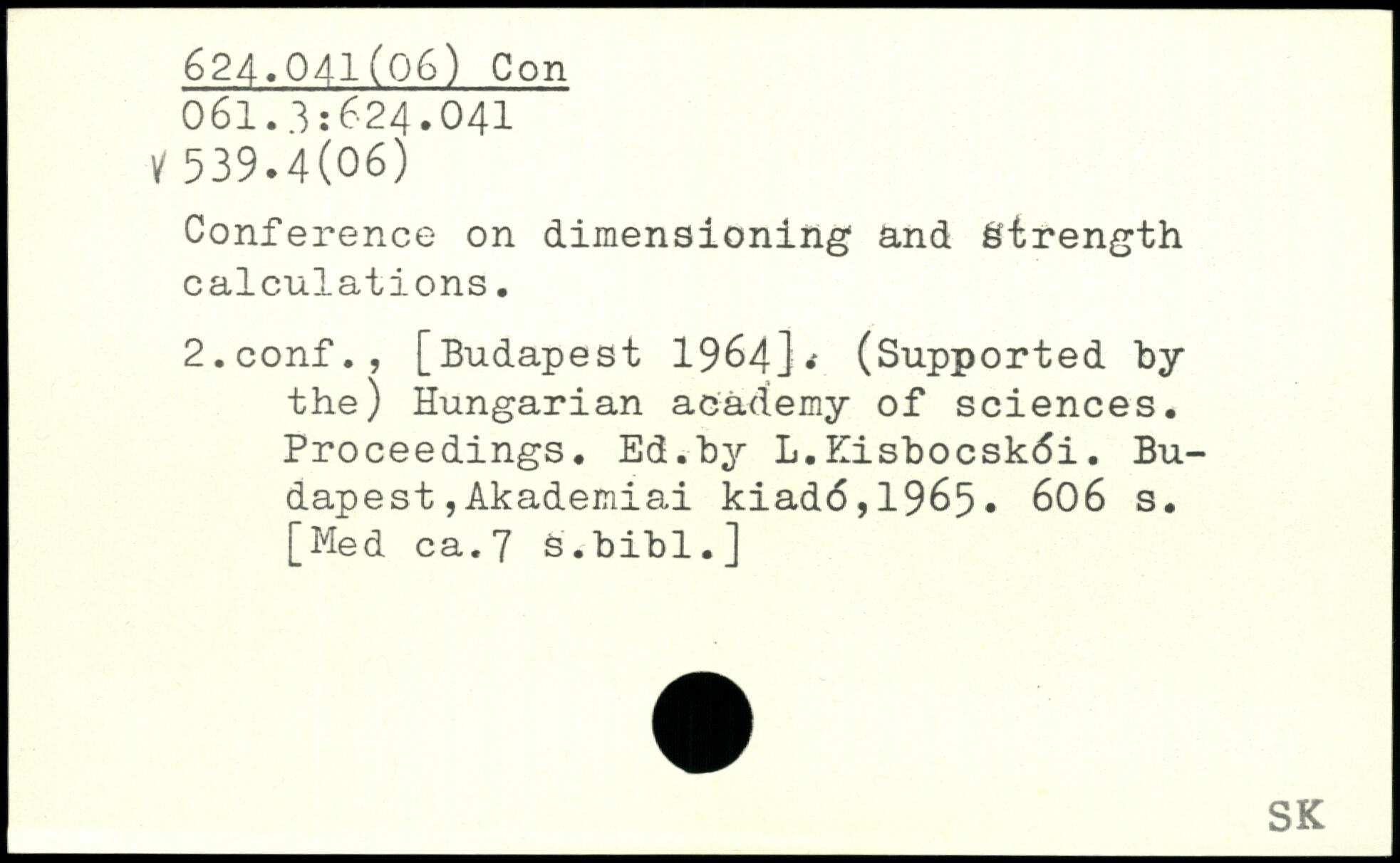 Conference on dimensioning and Strength calculations. 2.conf.