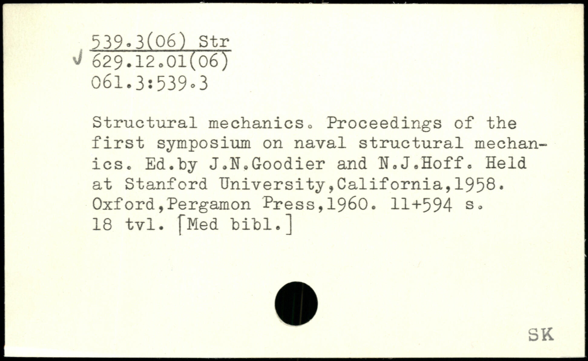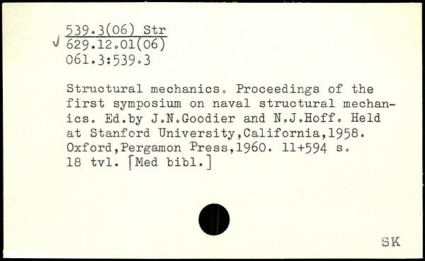 Structural mechanics, Proceedings of the first symposium on naval structural mechanics. Ed.by J.N.Goodier and H.J.Hoff.