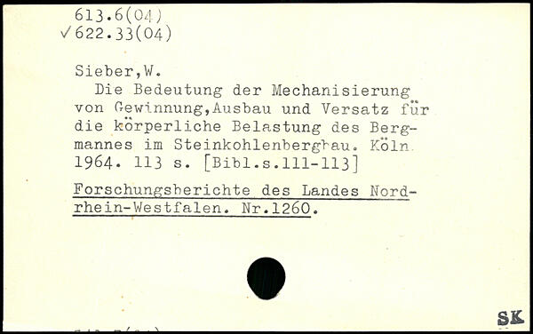 Die Bedeutung der Mechanisierung von Gewinnung,Ausbau und Versatz für die körperliche Belastung des Bergmannes im Steinkohlenbergbau.