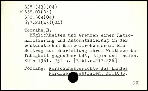 Möglichkeiten und Grenzen einer Rationalisierung und Automatisierung in der westdeutschen Baumwollrohweberei. Ein Beitrag zur Beurteilung ihrer Wettbewerbsfähigkeit gegenüber USA, Japan und Indien.