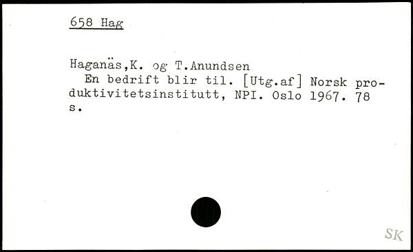 En bedrift blir til. [Utg.af] Norsk produktivitetsinstitutt, NPI. Oslo 1967.