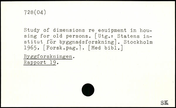 Study of dimensions re eouipment in housing for old persons. [Utg.: Statens institut för byggnadsforskning].