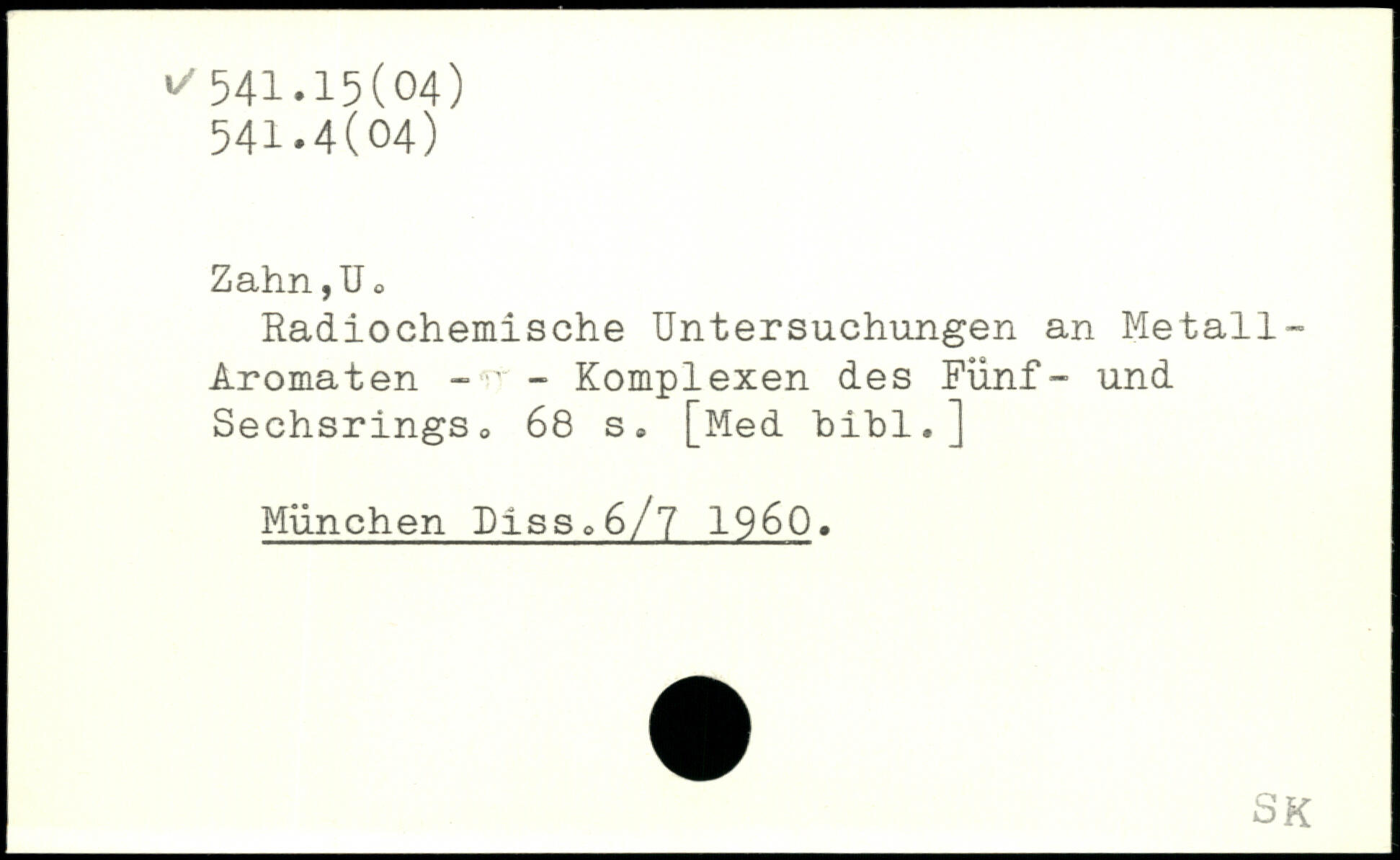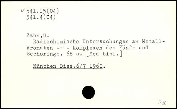 Radiochemische Untersuchungen an Metall-Aromaten - Komplexen des Fünf- und Sechsrings0