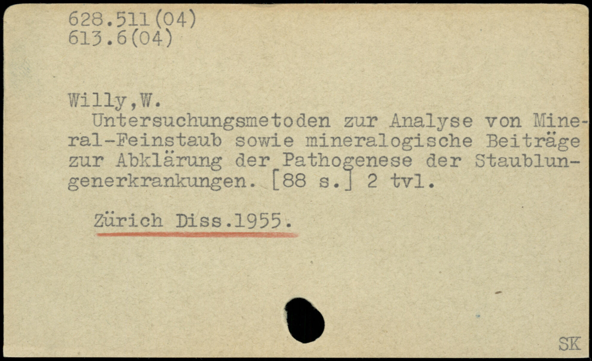 Unt ersuchungsmetoden zur Analyse von Mineral-Peinstaub sowie mineralogische Beiträge zur Abklärung der Pathogenese der Staublungenerkrankungen. [