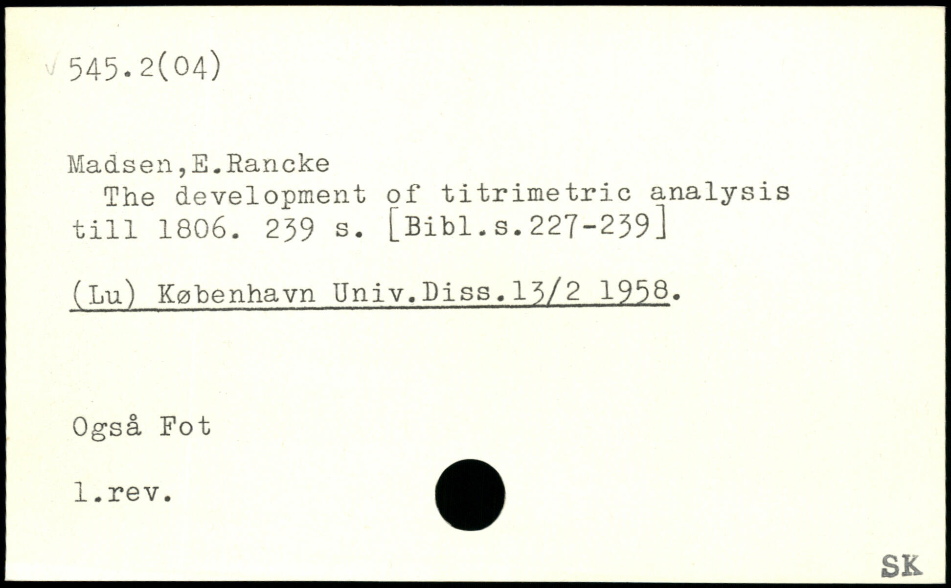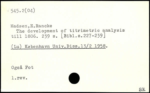 Madsen,E.Rancke The development of titrimetric analysis till 1806.
