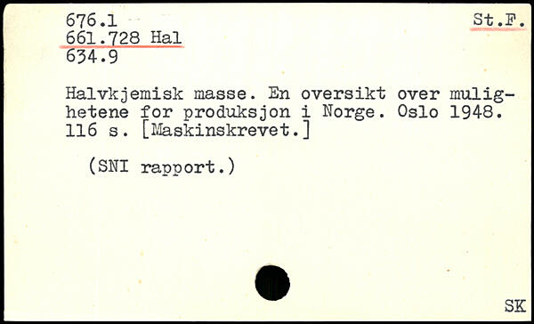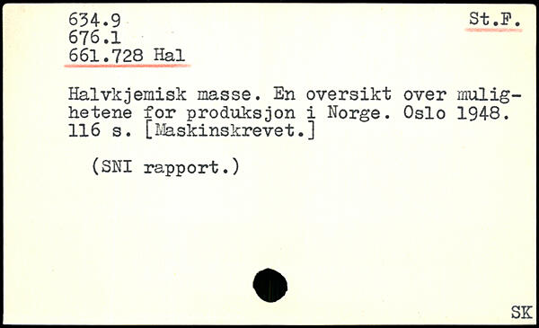 Halvkjemisk masse. En översikt over mulig-hetene for produksjon i Norge. Oslo 1948.