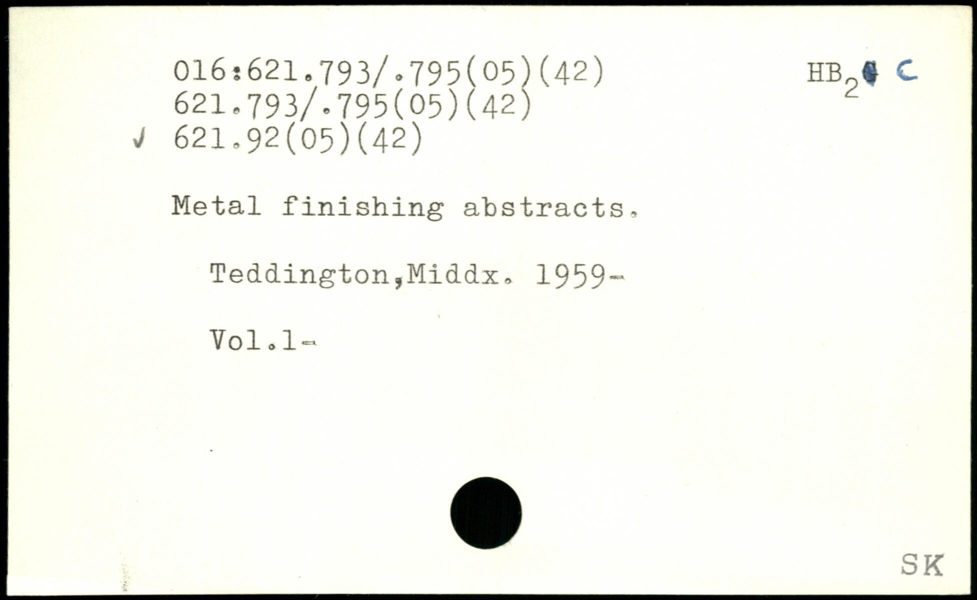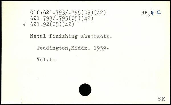 Metal finishing abstracts, Teddington,Middx, 1959“ Vol,1“