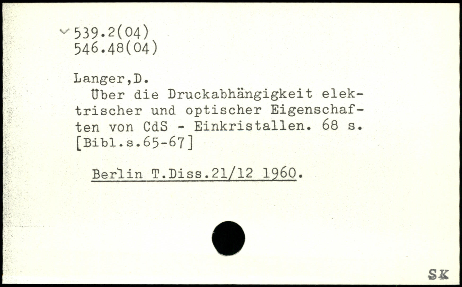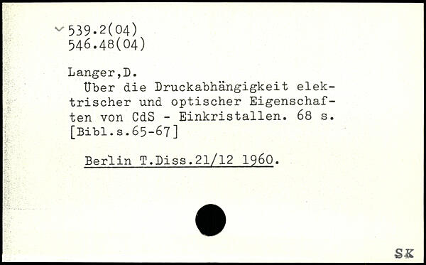 Uber die Druckabhängigkeit elektrischer und optischer Eigenschaften von CdS - Einkristallen.