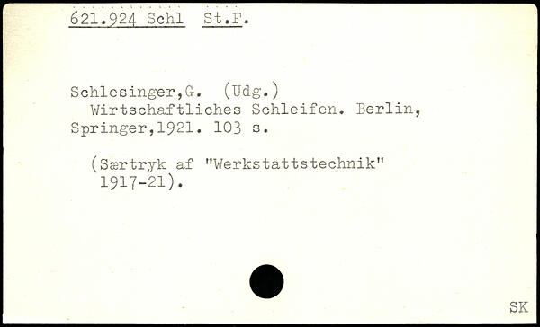 Schlesinger, G-. (Udg.) Wirtschaftliches Schleifen.