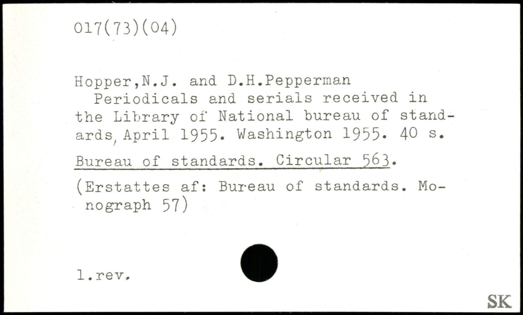 Periodicals and serials received in the Library of National bureau of standards, April 1955.