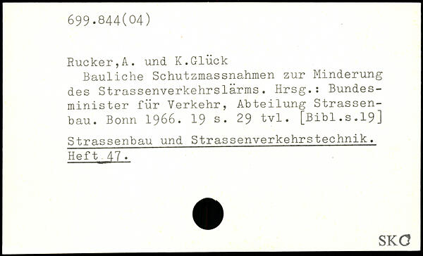 Bauliche Schutzmassnahmen zur Minderung des Strassenverkehrslärms. Hrsg.: Bundesminister für Verkehr, Abteilung Strassen-bau. Bonn 1966.