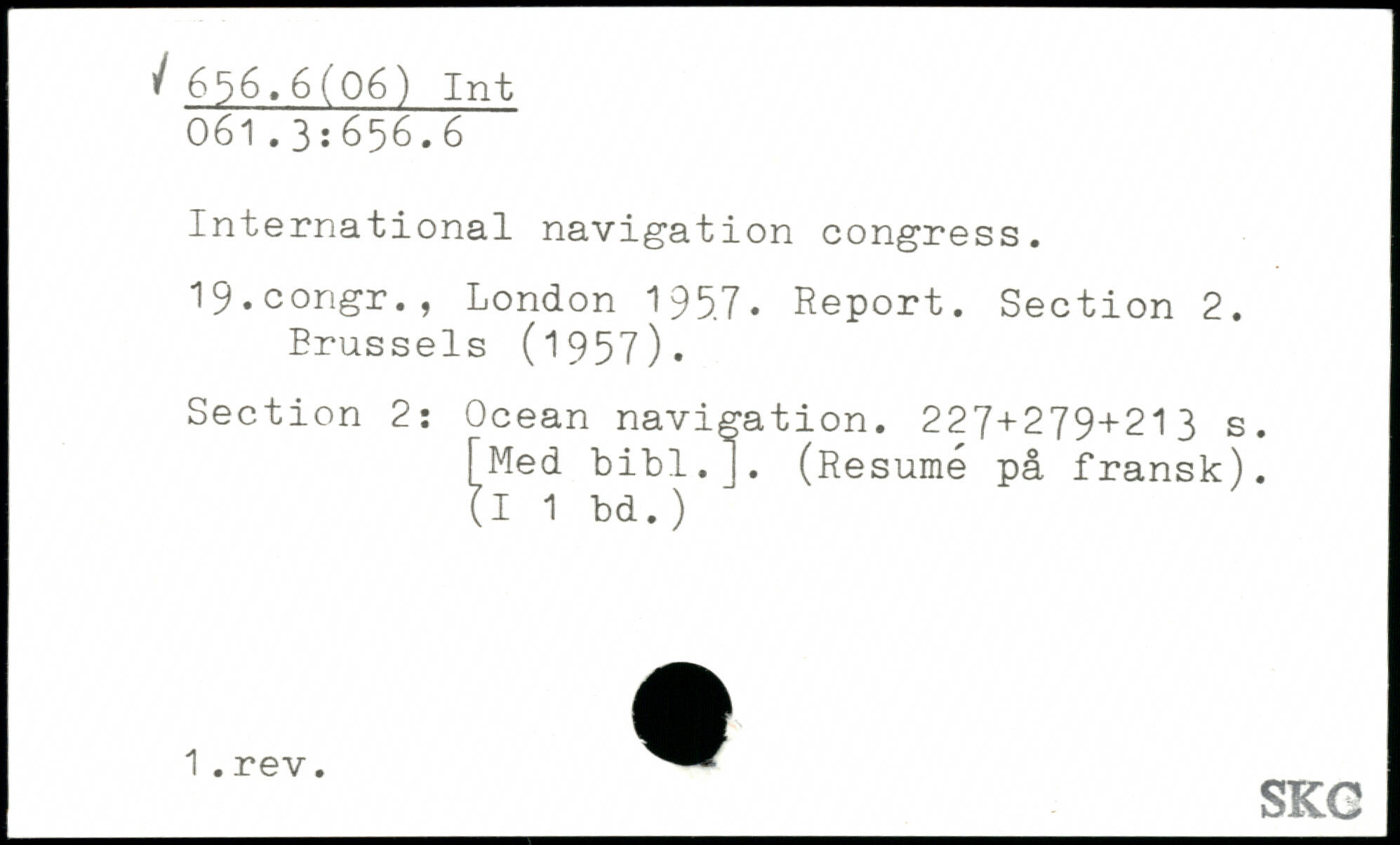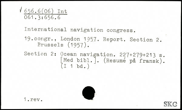 International navigation congress. 1 9. congr. , London 195.7. Report. Section 2. Erussels (1957)- Section 2: Ocean navigation.