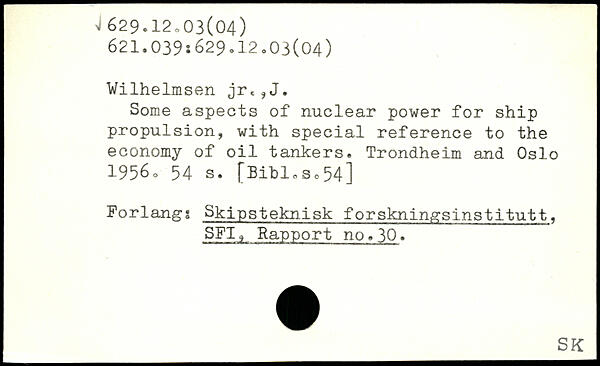 Vilhelmsen jr.,J. Some aspects of nuclear power for ship propulsion, with special reference to the economy of oil tankers. Trondheim and Oslo 19560