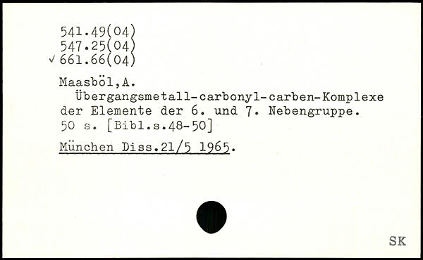 Übergangsmetall-carbonyl-carben-Komplexe der Elemente der 6. und 7, Nebengruppe.