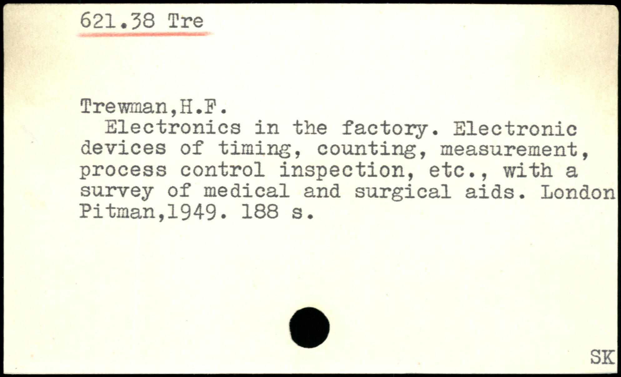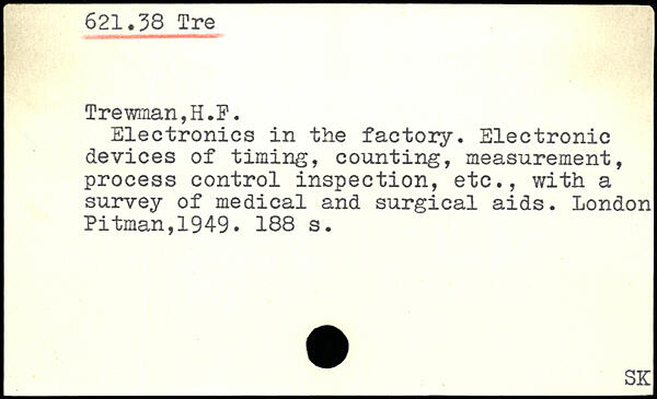 Electronics in the factory. Electronic devices of timing, counting, measurement, process control inspection, etc., with a survey of medical and surgical aids. London Pitman,1949.