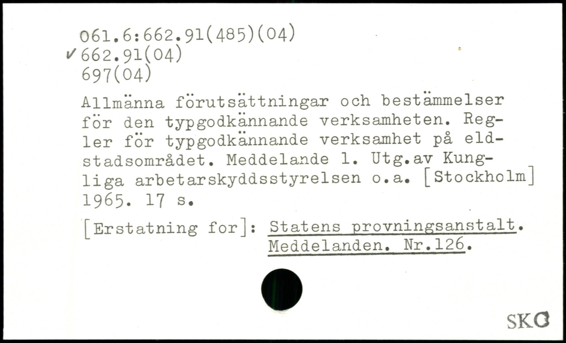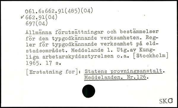 Allmänna förutsättningar och bestämmelser för den typgodkännande verksamheten. Regler för typgodkännande verksamhet på eldst adsområdet. Meddelande 1. Utg.av Kungliga arbetarskyddsstyreIsen o.a.