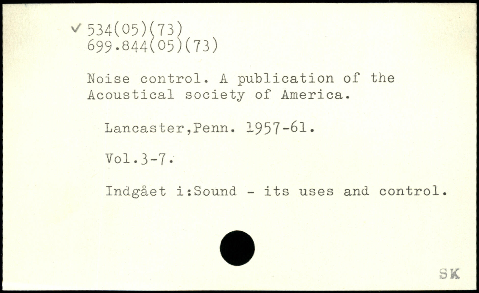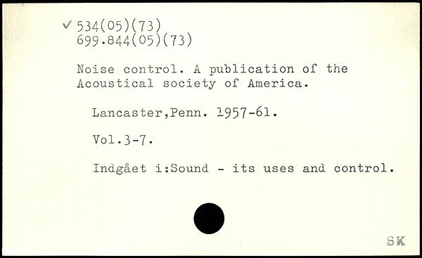 Noise control. A publication of the Acoustical society of America. Lancaster,Penn. 1957-61.