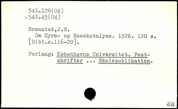 Brønsted, J,IT. Om Syre- og Basekatalyse, 1926.