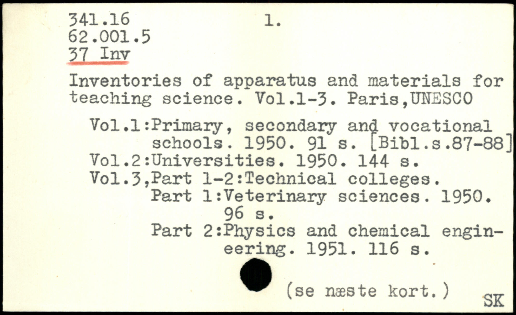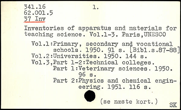 Inventories of apparatus and materials for teaching science.