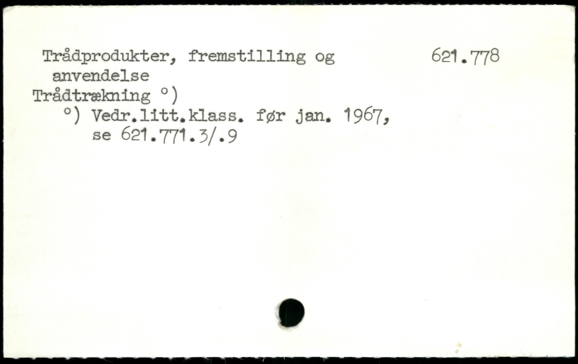 Trådprodukter, fremst1111ng og 621.778 anvendelse Trådtrækning .) .) Vedr.litt.klass. før jan. 1967, se 621.771.3/.9
