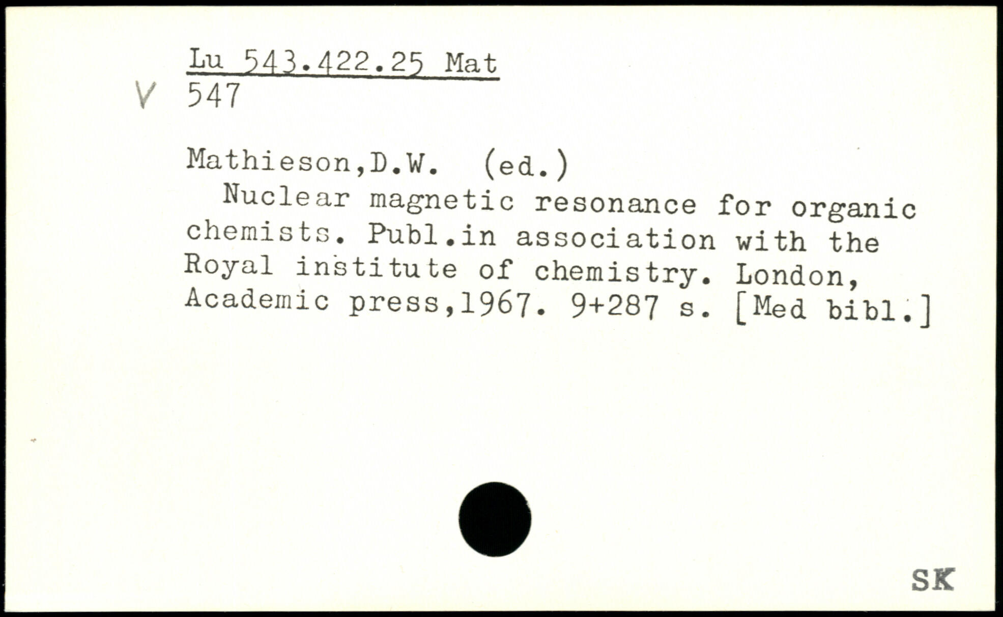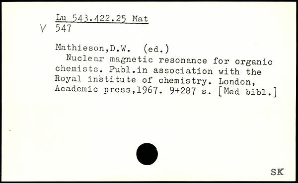 Nuclear magnetic resonance for organic chemists. Publ.in association with the Royal institute of chemistry.