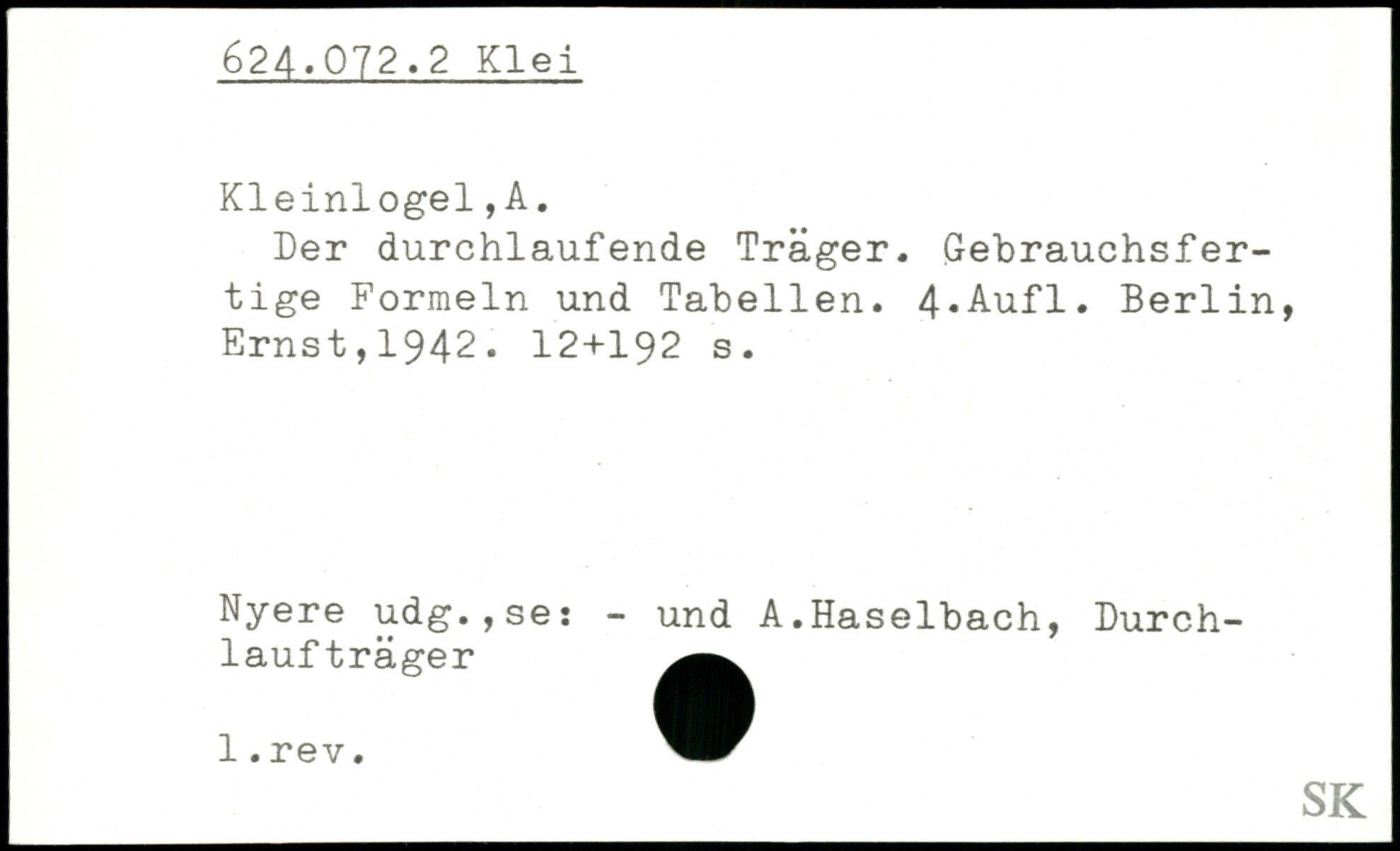 Der durchlaufende Träger. Gebrauchsfertige Formeln und Tabellen.