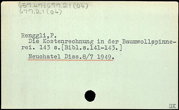 Die Kostenrechnung in der Baumwollspinnerei.