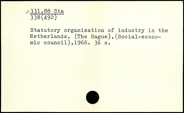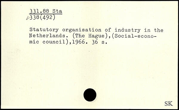 Statutory organisation of industry in the Netherlands. (The Hague),(Social-economic council),1966.