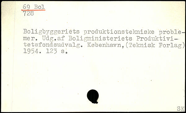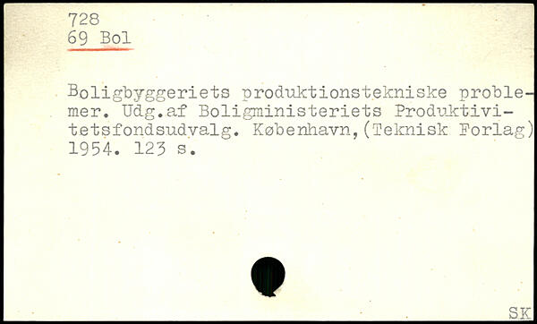 Boligbyggeriets produktionstekniske problemer. Udg.af Boligministeriets Produktivi— tetsfondsudvalg. København, (Teknisk Forlag) 1954.
