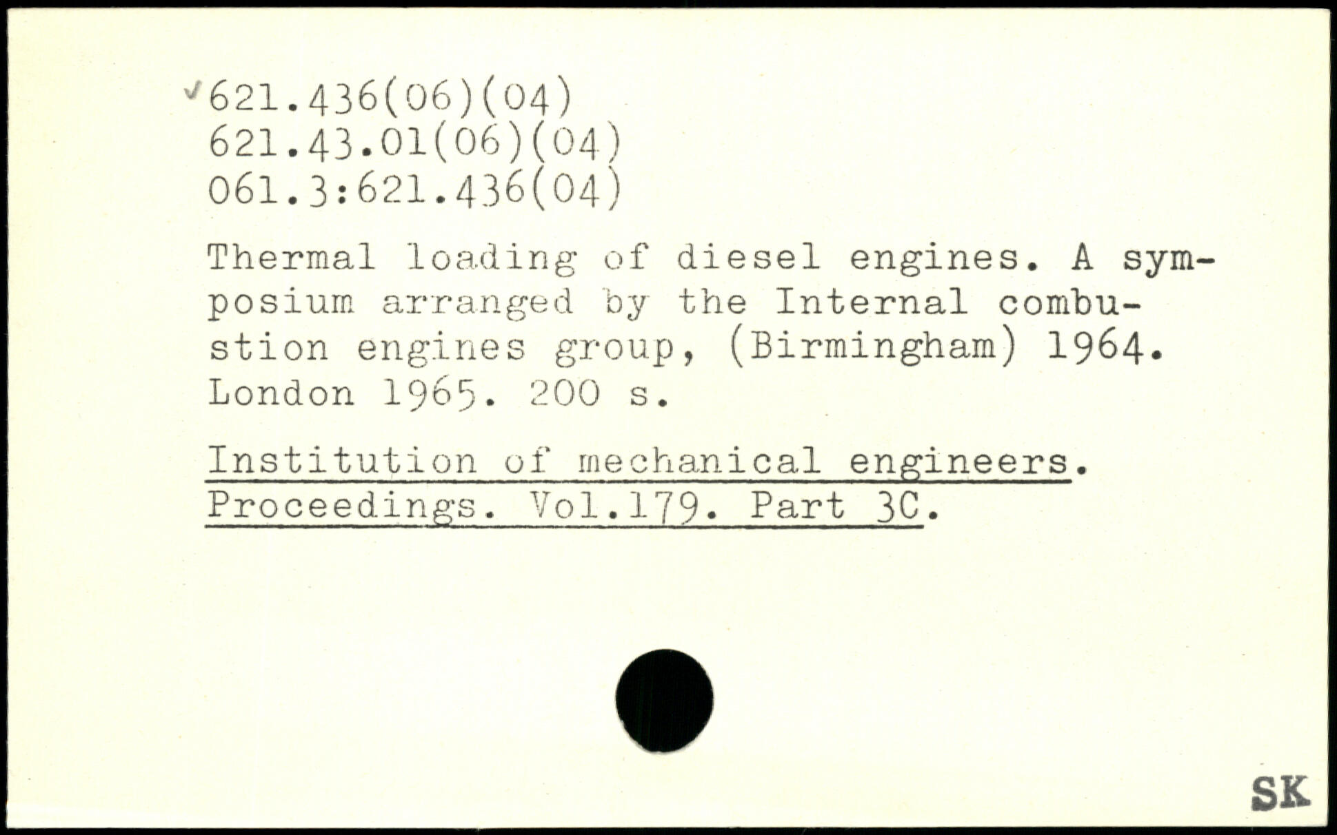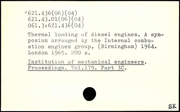 Thermal loading of diesel engines. A symposium arranged by the Internal combustion engines group, (Birmingham) 1964.