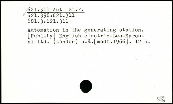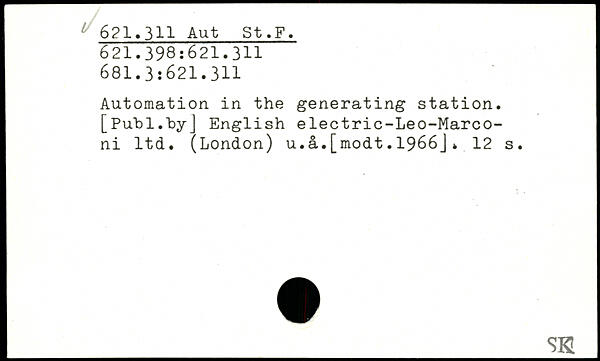 Automation in the generating station. [Publ.hy] English electric-Leo-Marco-ni ltd. (London) u.a.[modt.1966J.