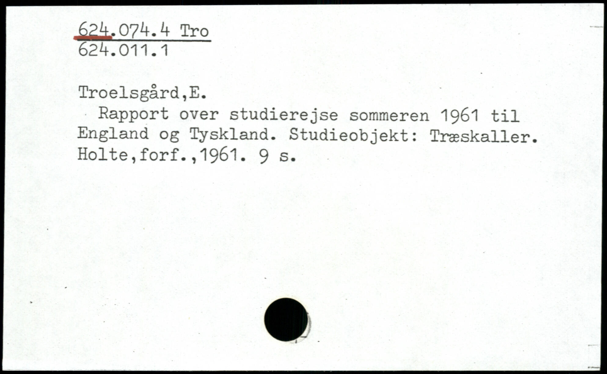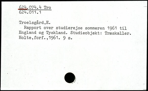 Rapport over studierejse sommeren 1961 til England og Tyskland. Studieobjekt: Træskaller. Holte,forf.,1961.