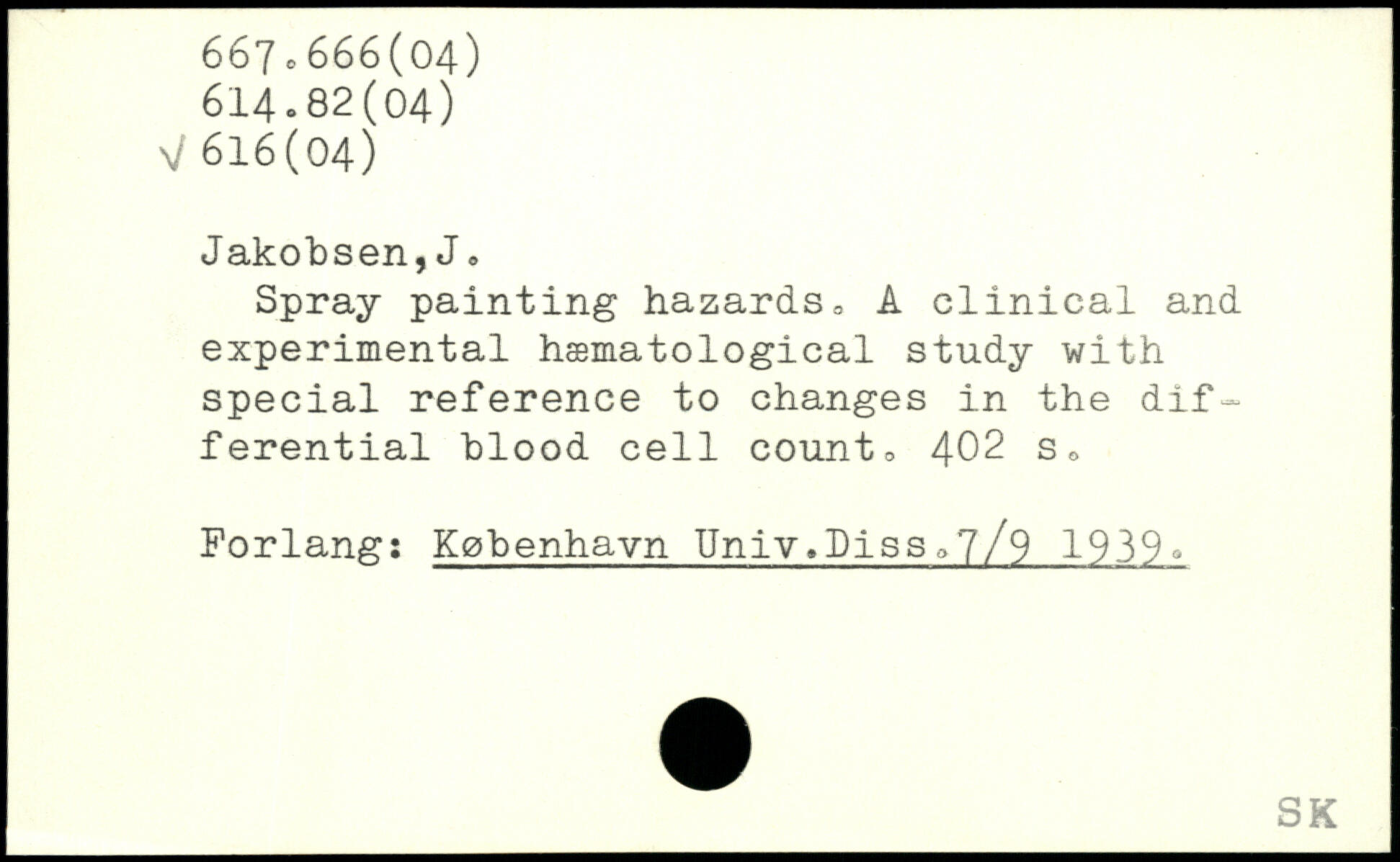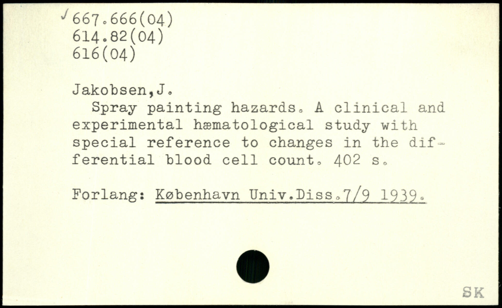Spray painting hazards. A clinical and experimental hæmatological study with special reference to changes in the differential blood cell count