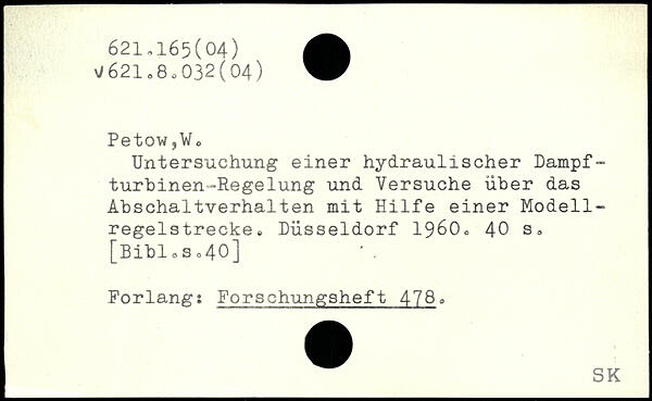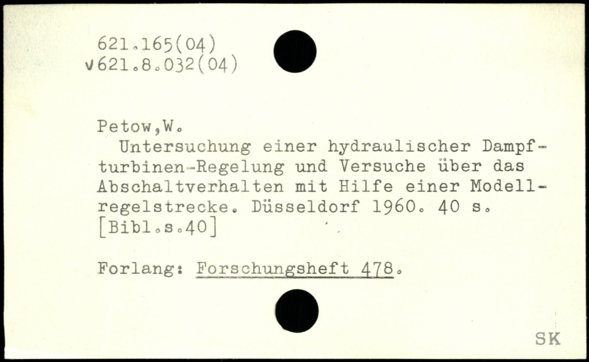 Petow?Wo Untersuchung einer hydraulischer Dampf-turbinen-Regelung und Versuche über das Abschaltverhalten mit Hilfe einer Modellregelstrecke, Düsseldorf 1960