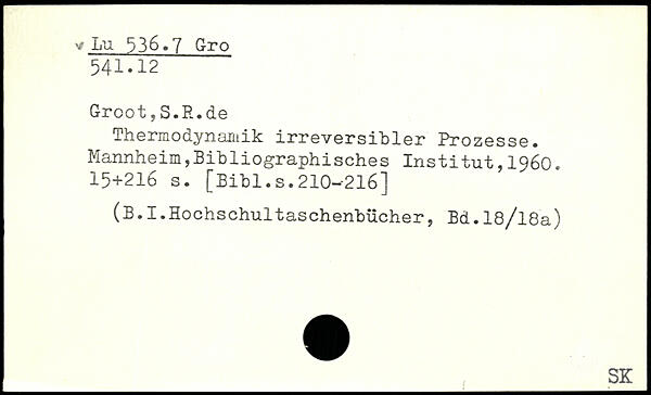 Thermodynamik irreversibler Prozesse. Mannheim bibliographisches Institut,1960.