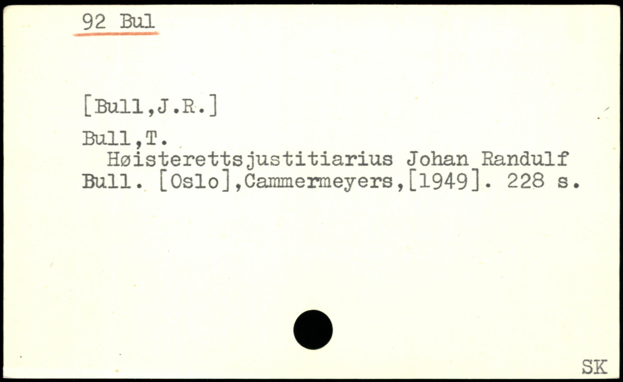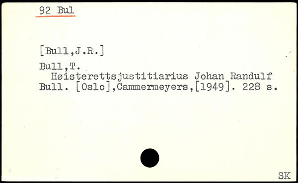 Høisterettsjustitiarias Johan Randulf Ball. [Oslo],Cammermeyers,[1949].