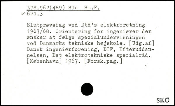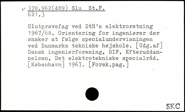 Slutprøvefag ved DtH’s elektroretning 1967/68. Orientering for ingeniører der ønsker at følge specialundervisningen ved Danmarks tekniske højskole. [Udg.af] Dansk ingeniørforening, DIP, Efteruddannelsen, Det elektrotekniske specialråd..