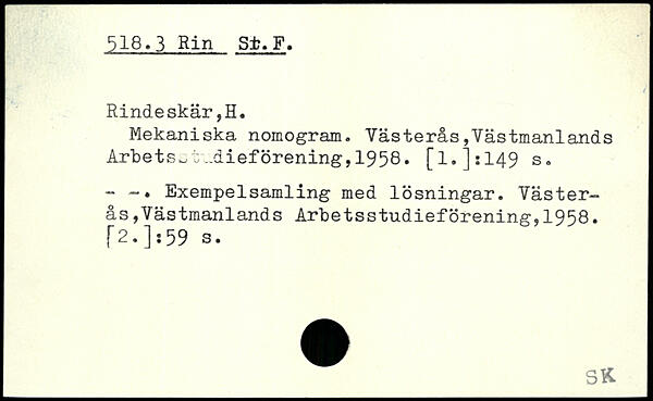 Mekaniska nomogram. Västerås,Västmanlands Arbets^t.dieförening,1958. [1.]