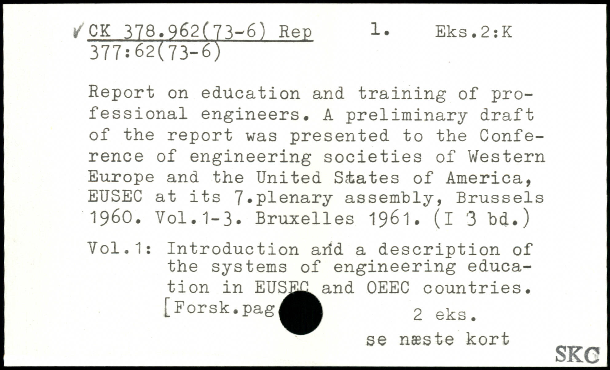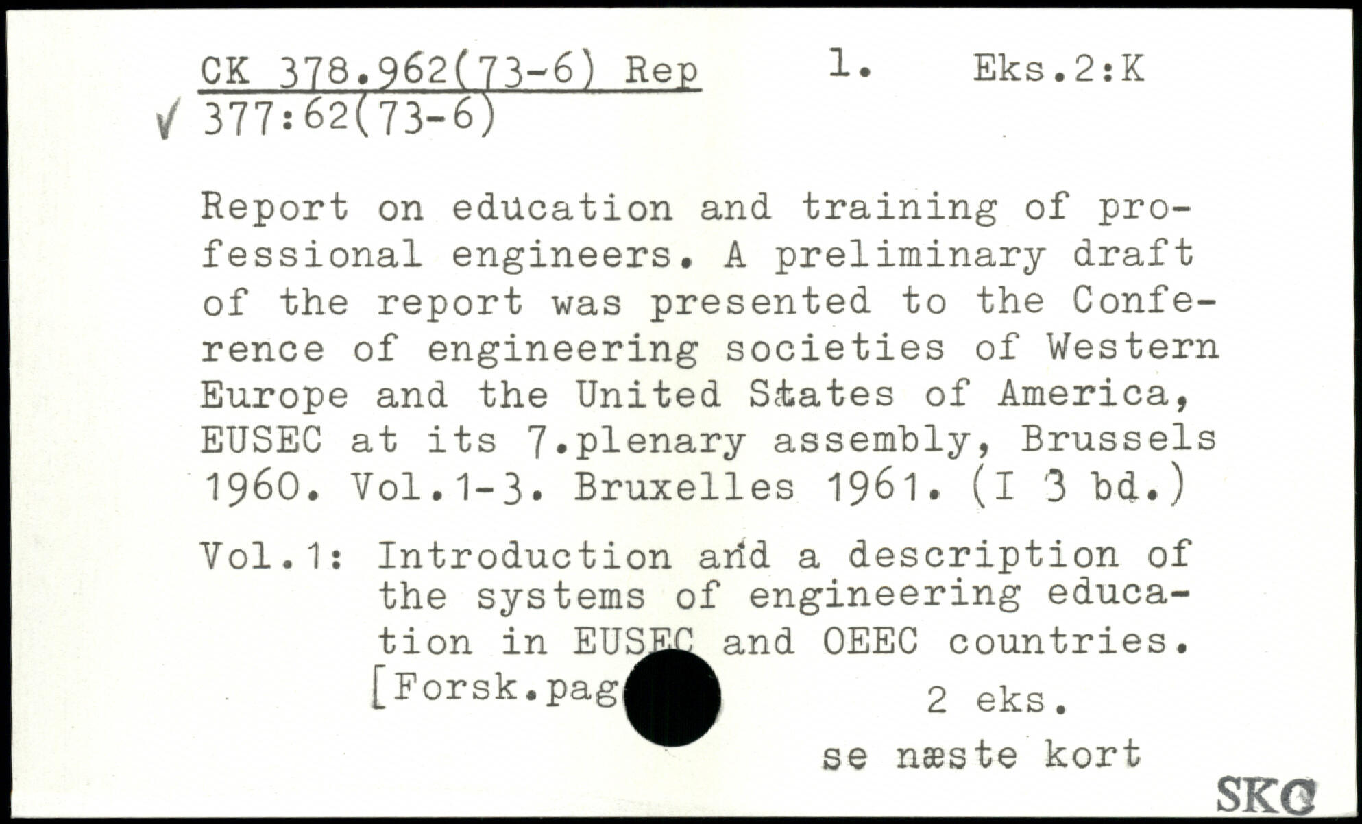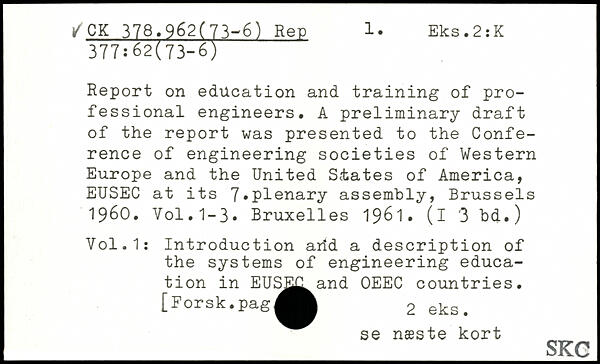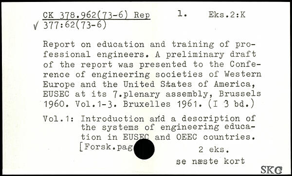 Report on education and training of professional engineers. A preliminary draft of the report was presented to the Conference of engineering societies of Western Europe and the United S&ates of America, EUSEC at its 7.plenary assembly