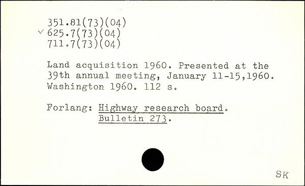 Land acquisition 1960. Presented at the 39th annual meeting, January U-15,1960.