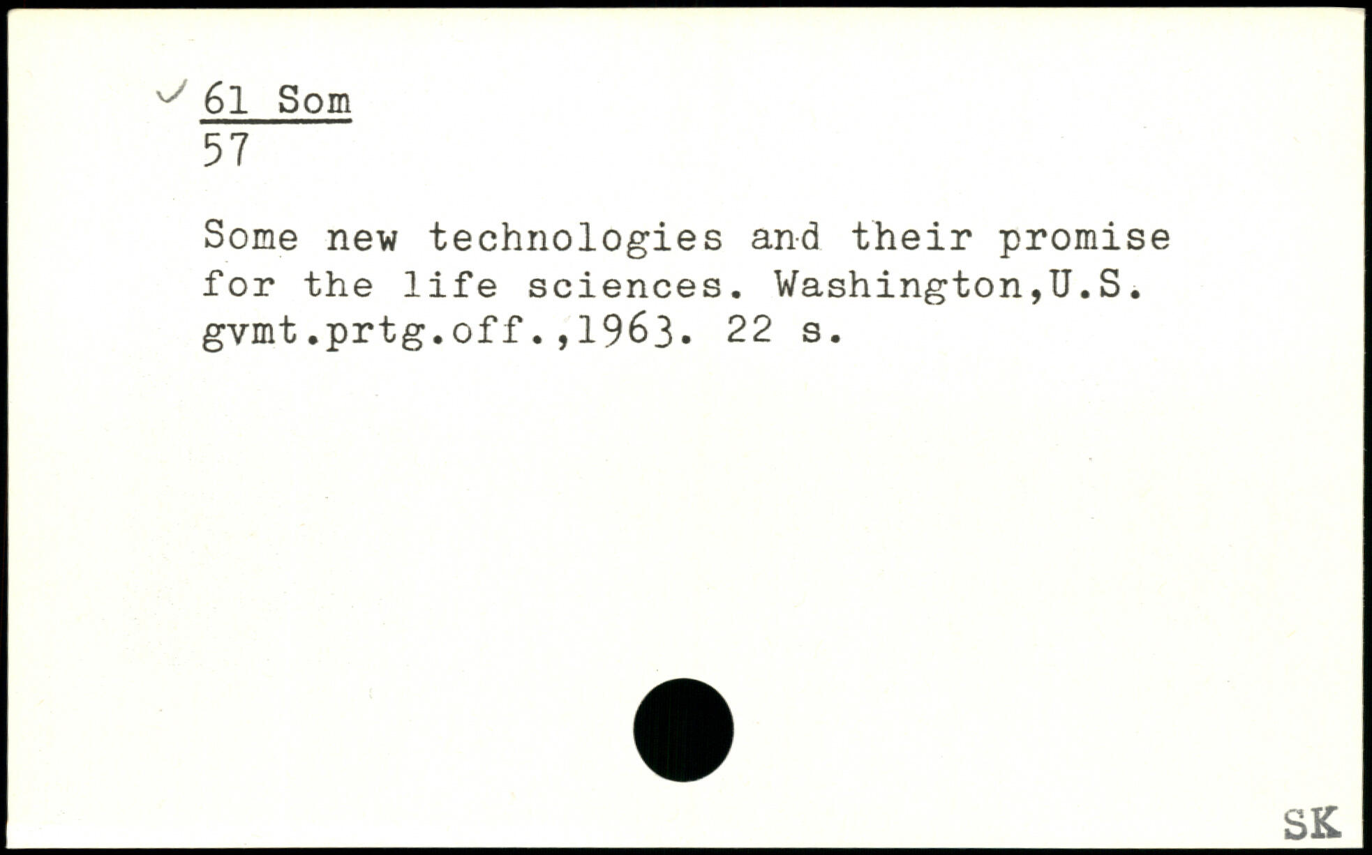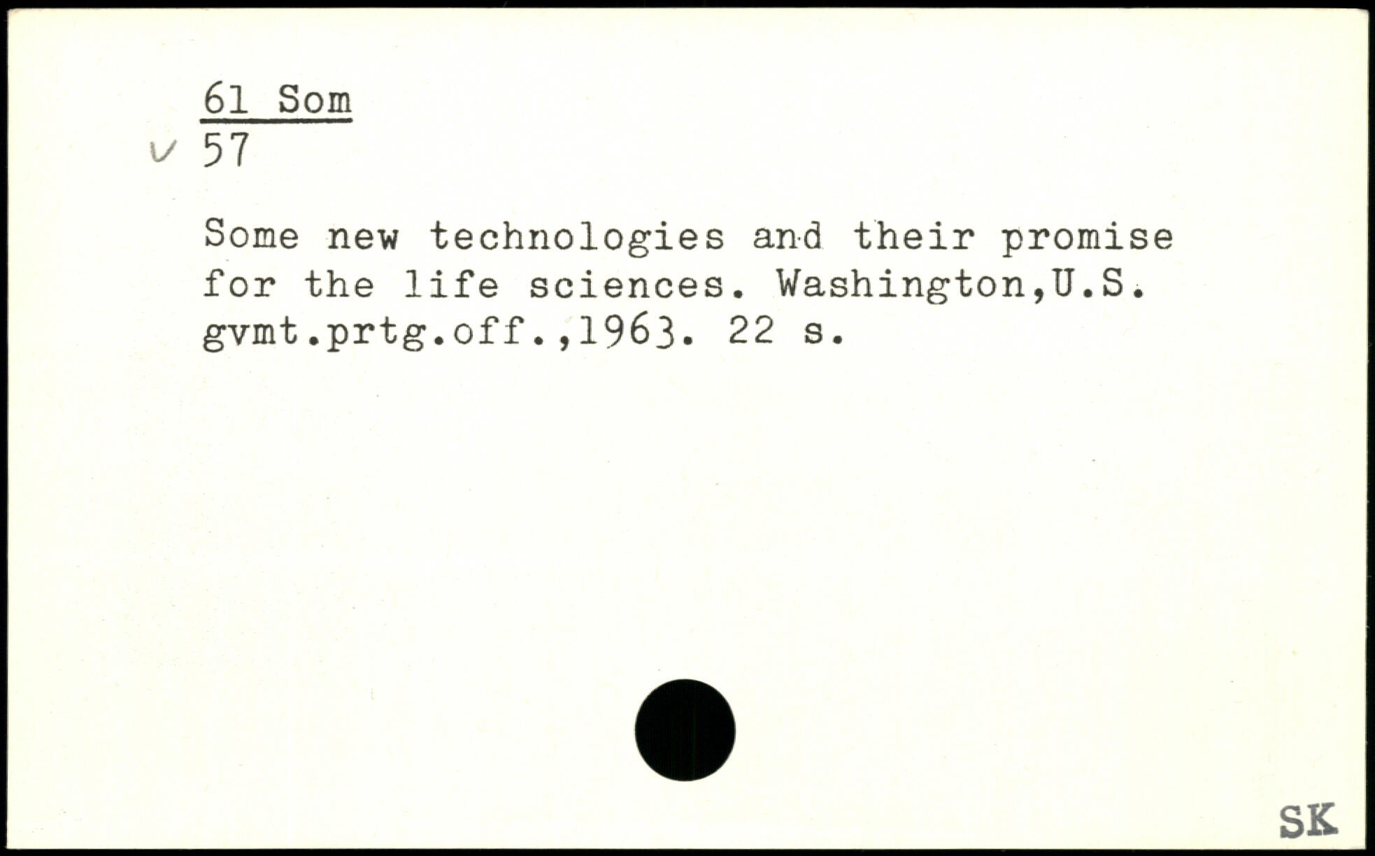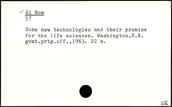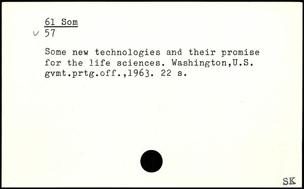 Some new technologies and their promise for the life sciences. Washington,U.S. gvmt.prtg.off.,1963.