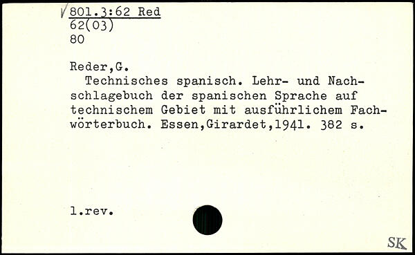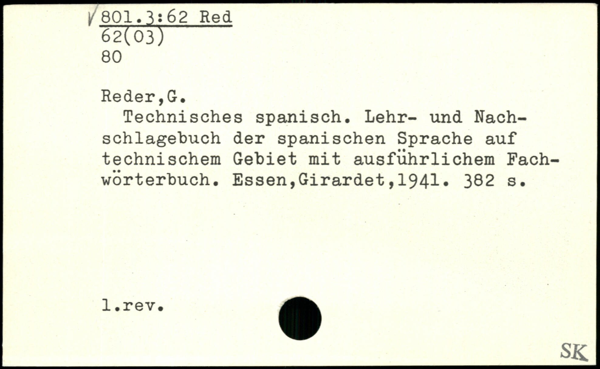 Technisches spanisch. Lehr- und Nach-schlagebuch der spanischen Sprache auf technischem Gebiet mit ausführlichem Fachwörterbuch.