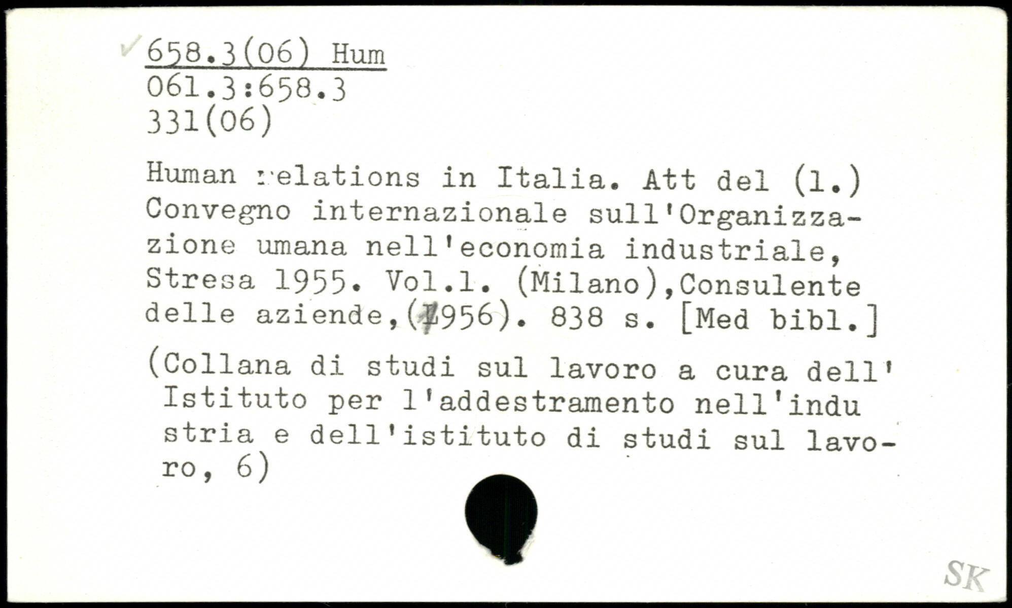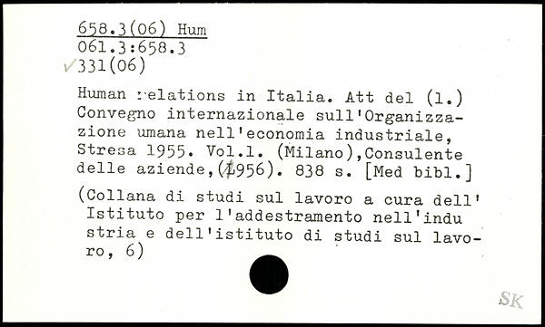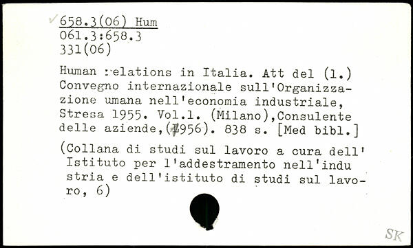 Human relations in Italia. Att del (l.) Convegno internazionale sull1 Org-anizza-zione umana nell1economia industriale, Stresa 1955