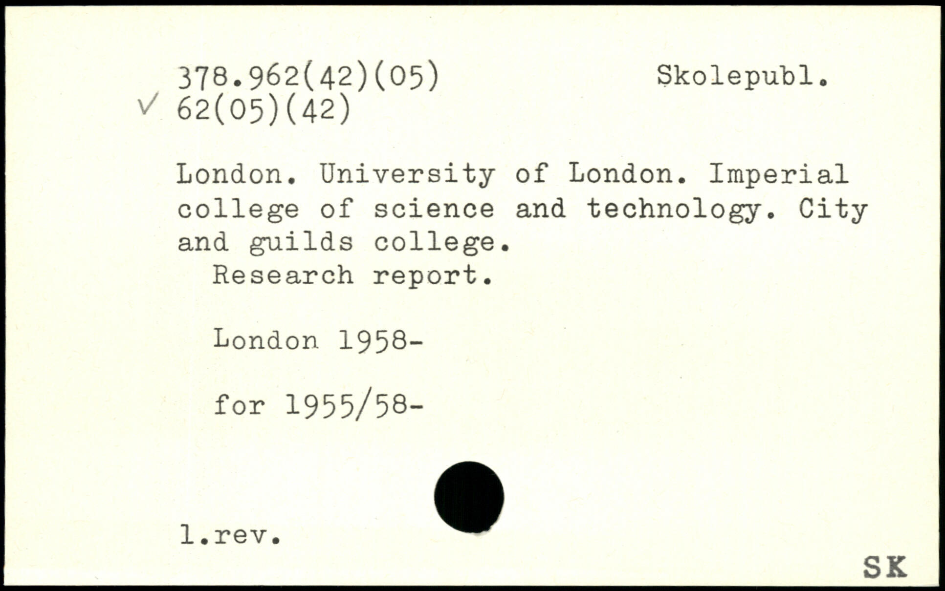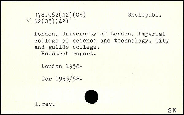 London. University of London. Imperial college of science and technology. City and guilds college. Research report.
