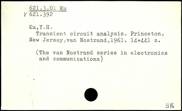 Ku,YoH0 Transient circuit analysis. Princeton, New Jersey,van Nostrand,1961.