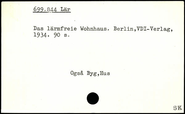 Das lärmfreie Wohnhaus, Berlin,VDI-Verlag, 1934. 90 s, Også Byg,Hus